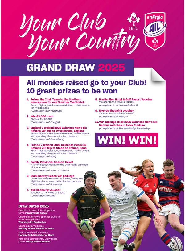 Most players should have received their 2025 Your Club Your Country raffle cards by now — if you haven’t, please don’t hesitate to contact your coaches, Tommy in the Bar or any of the members of the Fundraising Team.