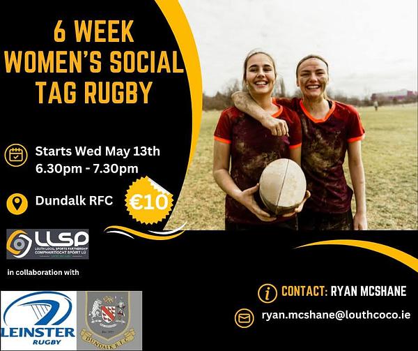 Women's Social Tag Rugby starting Wednesday 13th May at 6.30pm for 6 weeks at Dundalk Rugby Club.